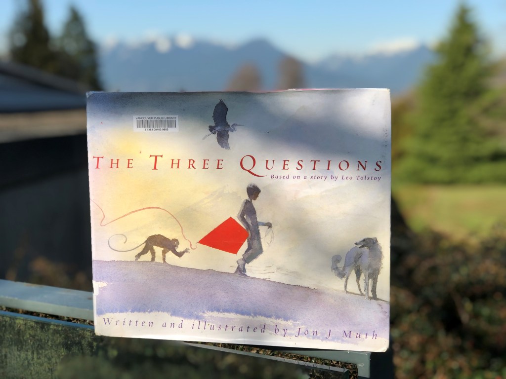 In Muth’s version of The Three Questions, a young boy Nikolai asks his animal friends these three questions: